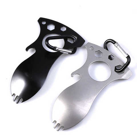 ช้อนส้อมสแตนเลสสำหรับการเดินทาง,ช้อนส้อมมีดแคมป์อเนกประสงค์สำหรับใช้กลางแจ้งทำอาหาร